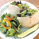 A flavorful blend of avocado, cucumber, mushrooms, tomatoes, roasted red peppers, artichoke hearts, onions and mixed greens served with hummas in a whole wheat tortilla OR a pita and finished with a Greek Feta dressing